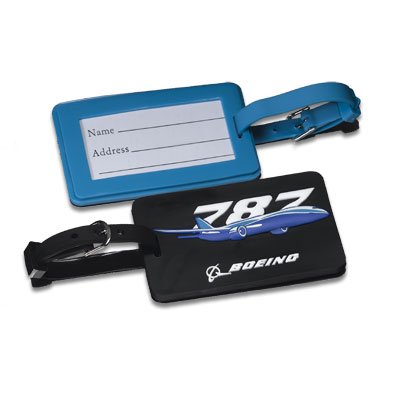 This luggage tag displays a dimensional airplane decoration and Boeing logo molded in PVC. Measures approximately 3.25" x 2". Imported.
